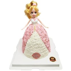 เค้กปั้น3มิติ ตุ๊กตาบาร์บี้ บีบครีมดอกกุหลาบ