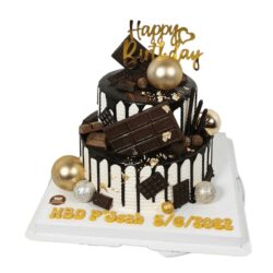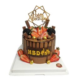 เค้กชอคโกแลตดริปทรงสูง บีบครีมเมอร์แรง พร้อมข้อความHBD