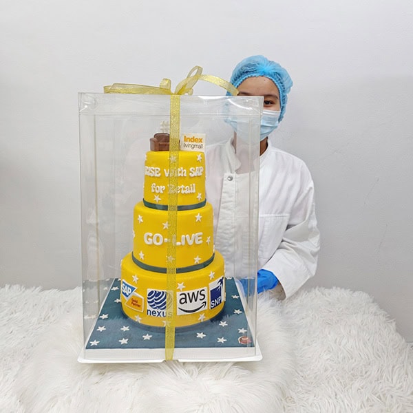 เค้ก3ชั้น Kick-off-โปรเจค ธีมเหลืองฟ้า ขนาด 7 ปอนด์