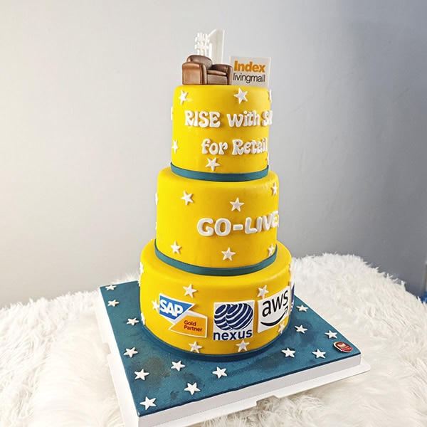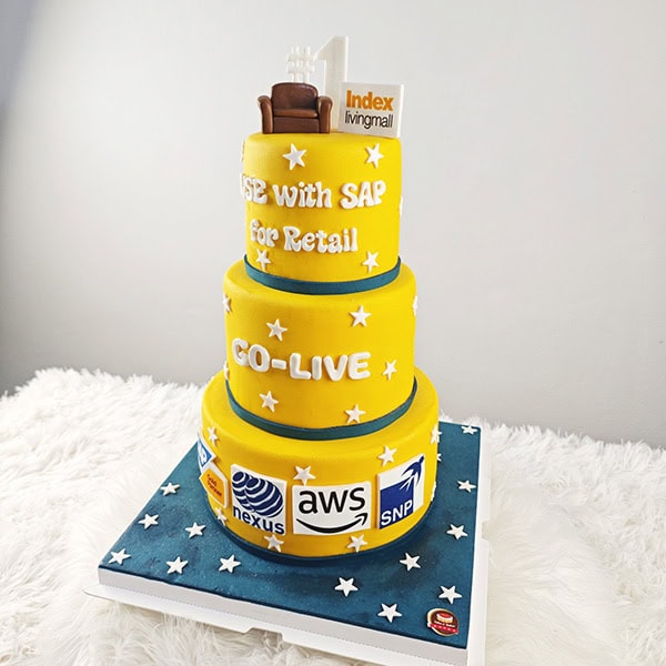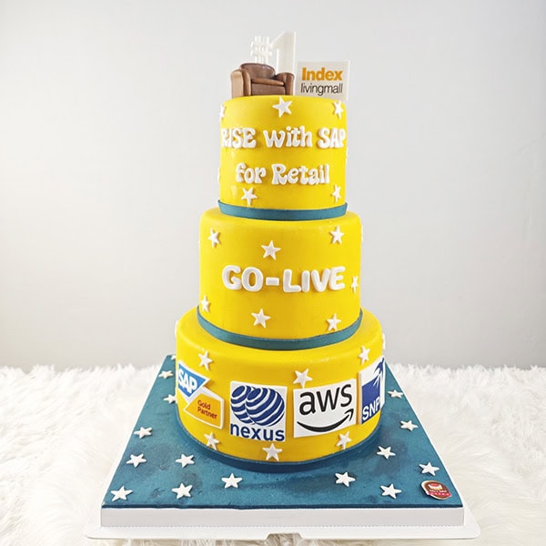 เค้ก3ชั้น Kick-off-โปรเจค ธีมเหลืองฟ้า