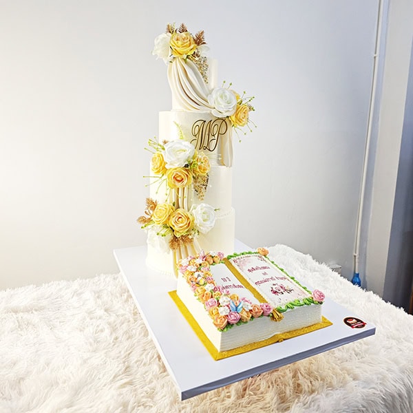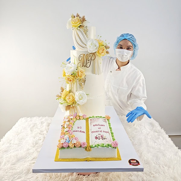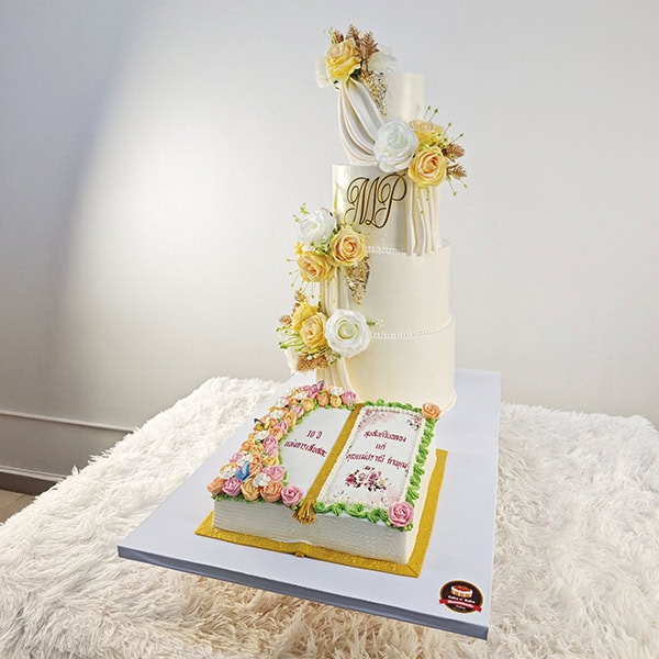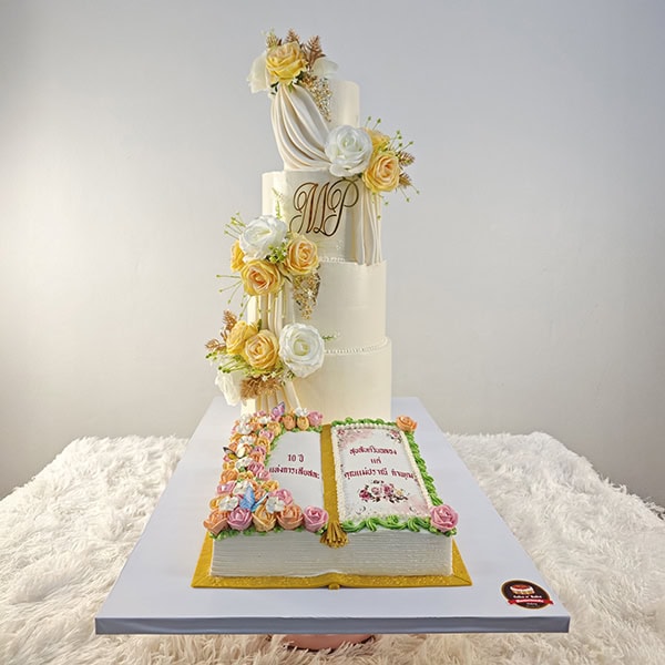 เค้กมุทิตาจิต 4ชั้น พร้อมเค้กเล่มหนังสือ