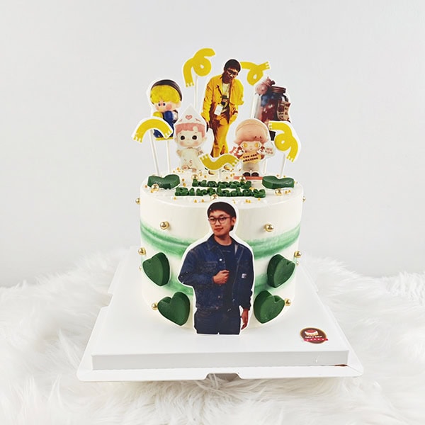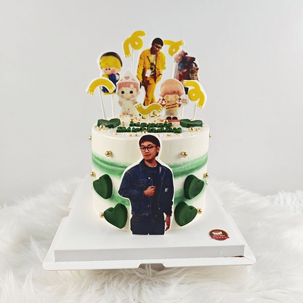 เค้กโฟโต้ สกรีนรูปภาพแบบPop-up ธีมสีเขียวเหลือง ขนาด 2 ปอนด์