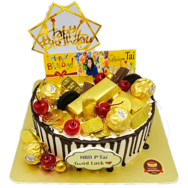 เค้กชอคโกแลตดริป สกรีนรูปภาพ ตกแต่งทองคำ