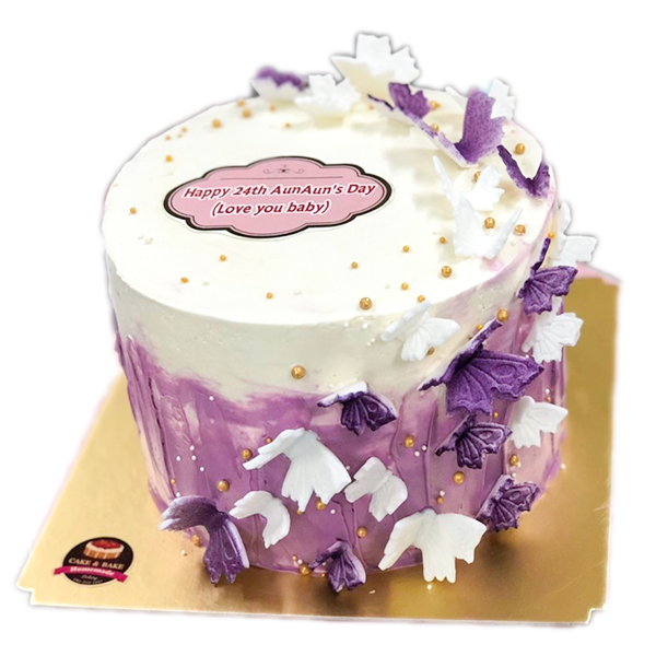 เค้กพาสเทล ตกแต่งผีเสื้อ โทนสีม่วง ขนาด 2 ปอนด์