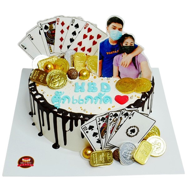 เค้กชอคโกแลตดริป ตกแต่งไพ่และทองคำ ขนาด 2 ปอนด์