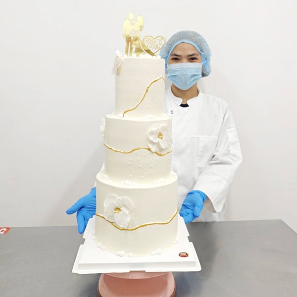 เค้กแต่งงาน3ชั้นสีขาว ไดคัทบ่าวสาว